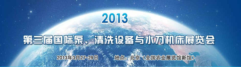 在巨大市场潜力推动下为使我国工业制造更加繁荣发展,在相关政府和行业协会的大力支持下,我们将于2013年3月27日-29日在北京全国农展馆(新馆)举行“2013国际泵清洗设备与水刀机床展览会(中国)展”。届时主办单位将邀请来自美国、英国、德国、澳大利亚、意大利、韩国、加拿大、西班牙、荷兰、挪威、日本及香港和台湾等国家和地区的企业参加,预计展出面积20000平米将有300多家企业展示他们在此行业中最新产品最新技术和设备,欢迎参展参观!