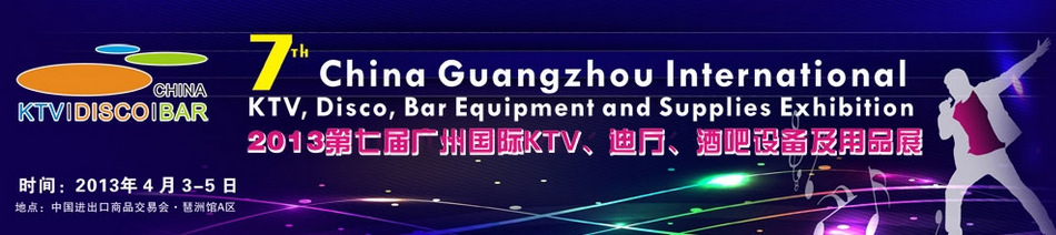第七届广州国际KTV迪厅酒吧设备及用品展将于2013年4月3-5日继续在广州中国进出口商品交易会琶洲展馆举行,致力成为国内外娱乐夜场投资商采购以及娱乐设备用品供应商展示、贸易、交流的首选平台。